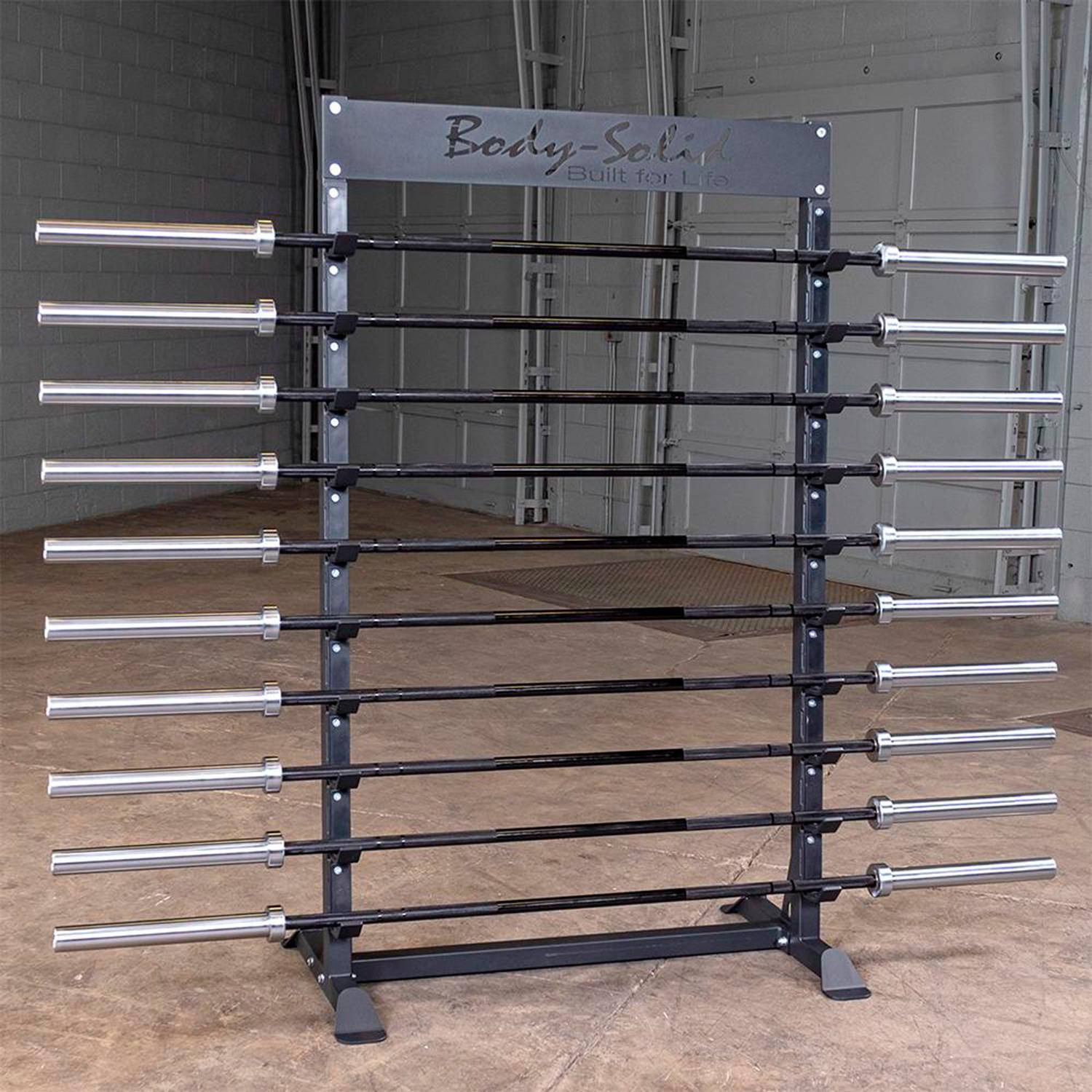 Body-Solid SBS100 Levytankoteline on helposti käytettävä säilytysteline jopa 10 levytangolle. Soveltuu erinomaisesti yhteisö- ja kuntosalikäyttöön.