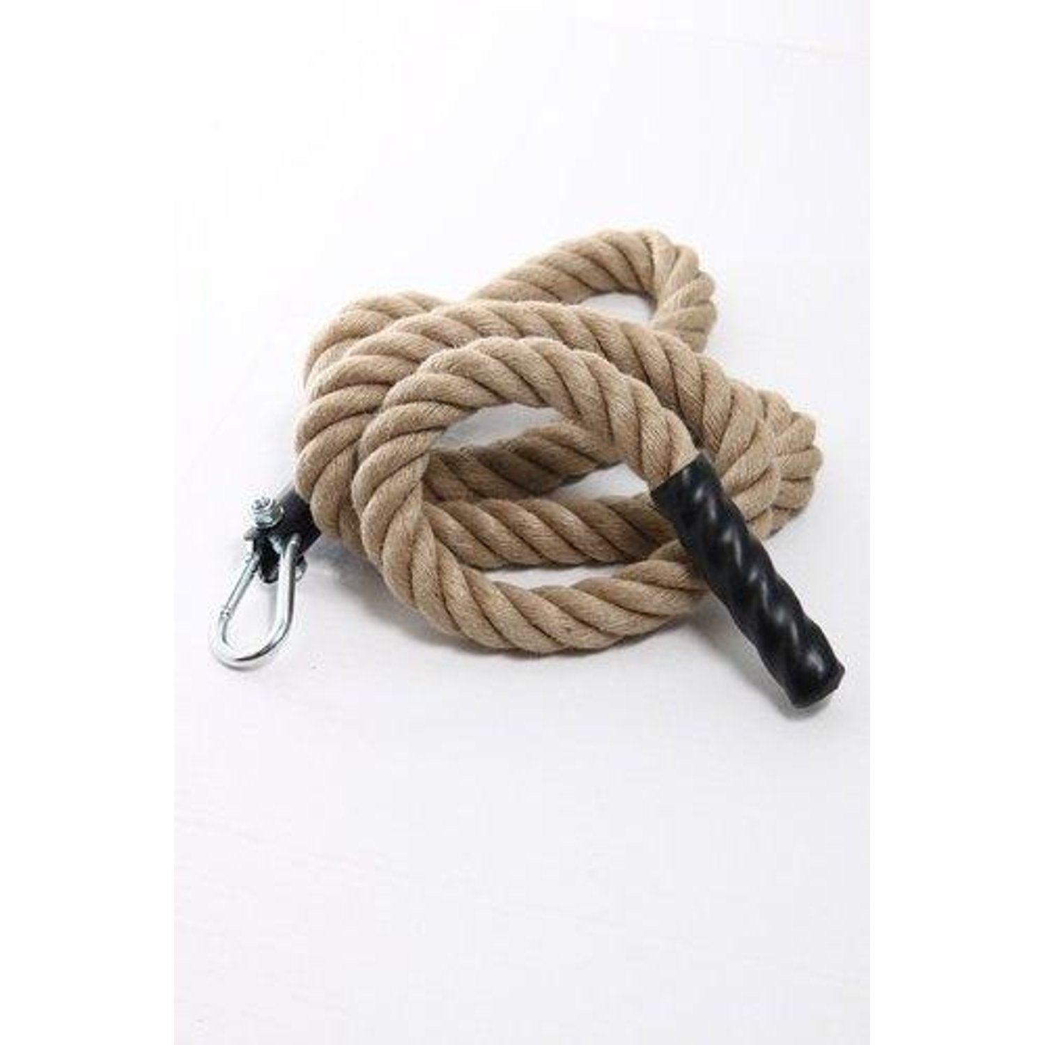 Erinomainen kiipeilyköysi kaikille kiipeilystä, roikkumisesta ja kiikkumisesta pitäville. Kaikille tuttu juttu koulujen liikunnantunneilta. Köyttä pitkin kiipeäminen on erinomainen harjoite, joka vahvistaa tehokkaasti käsiäsi, selkääsi ja monia muita lihasryhmiä riippuen kiipeämistyylistä. Myös lapset voivat kiipeillä ja kiikkua köydellä. Suosittelemme köyden pituudeksi samaa kuin kattokorkeutesi jos teet köyteen yhden solmun alas (vähentää pituutta noin 35 cm)