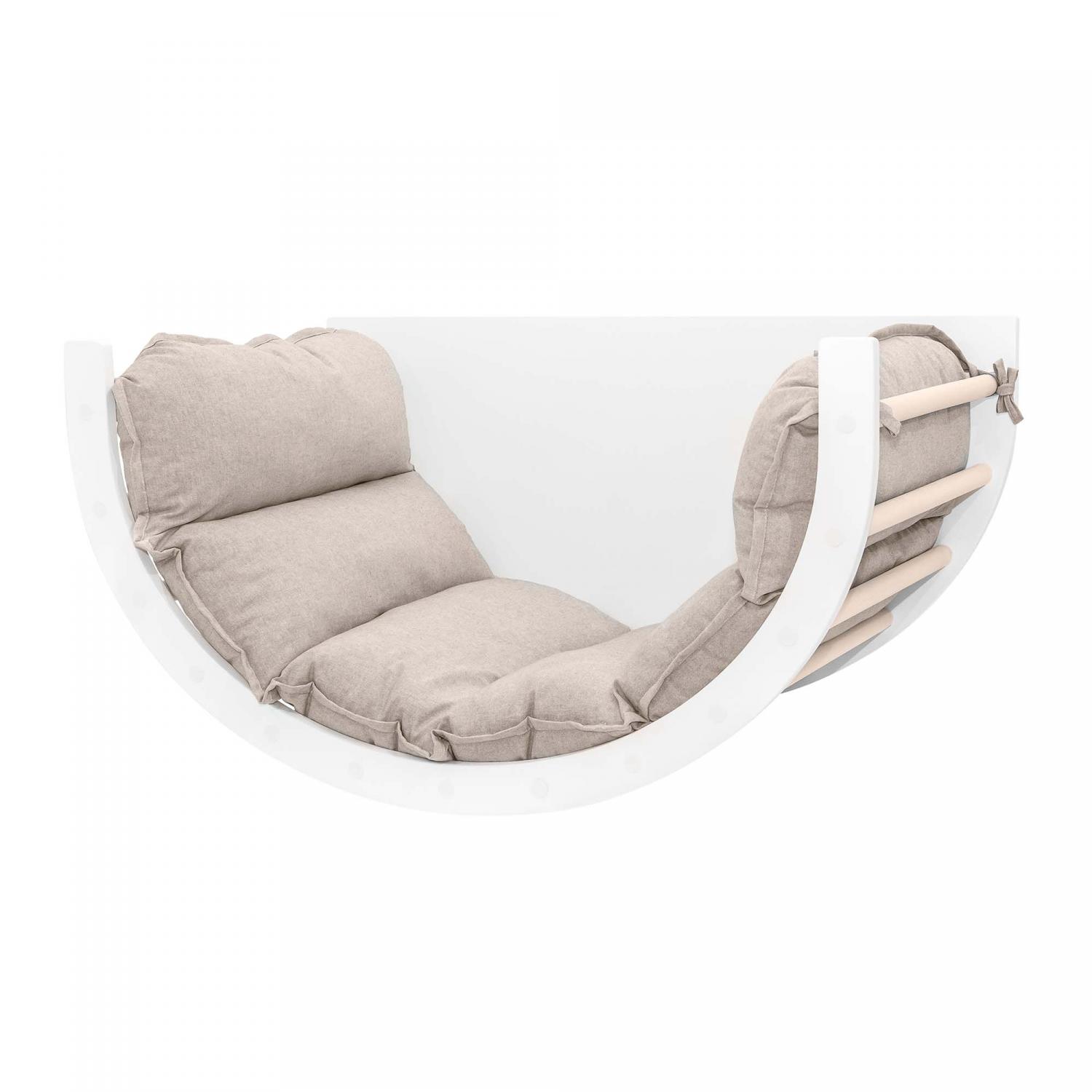 KAURA-pehmuste on suunniteltu käytettäväksi yhdessä LUOTO-kiipeilykaaren kanssa, kun kaari käännetään ylösalaisin ja sitä käytetään kiipeilyn sijaan kiikkuna. Pehmuste on pehmeä ja pöyheä, ja kiikkuminen sen kanssa on mukava, rauhoittava kokemus.
