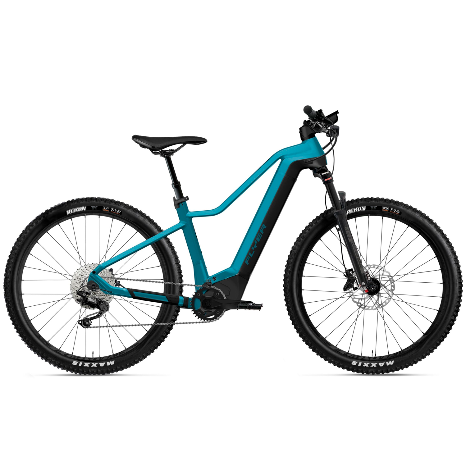 Laadukkaat 29” Maxxis Rekon Exo -renkaat vievät helposti läpi kivikkojen ja juurakoiden. Suuri, täysin integroitu 750 Wh akku on helppo irrottaa ulkoista latausta varten.