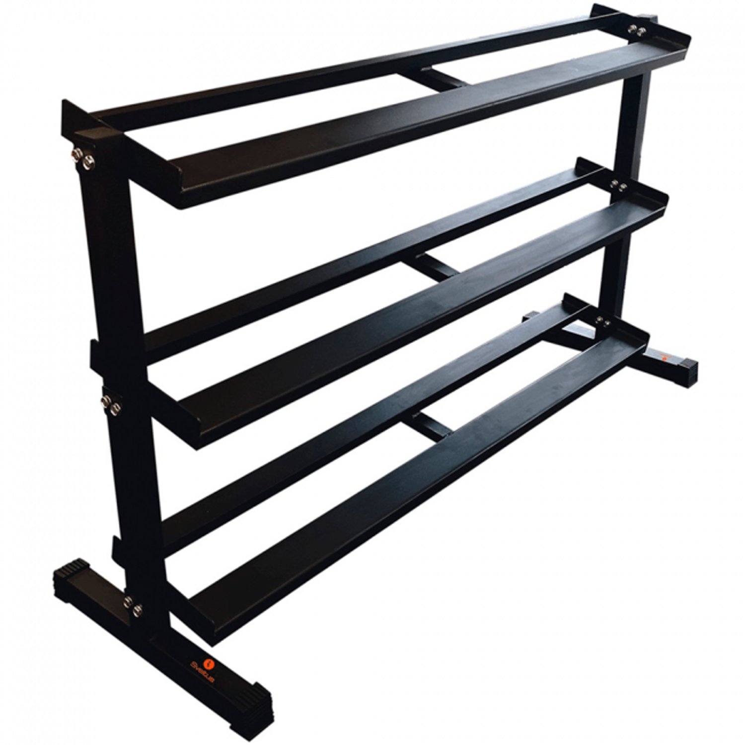 Sveltus Pro- käsipainoteline turvalliseen säilyttämiseen. Vankkarakenteisessa telineessä on kolme tasoa, jotka kantavat yhteensä jopa 350 kg. Tasot ovat kaltevassa kulmassa, joten käsipainojen nostaminen ja laskeminen on helppoa. Telineen jaloissa on kumisuojat, jotka suojaavat lattiaa ja pitävät telineen tukevasti paikallaan.