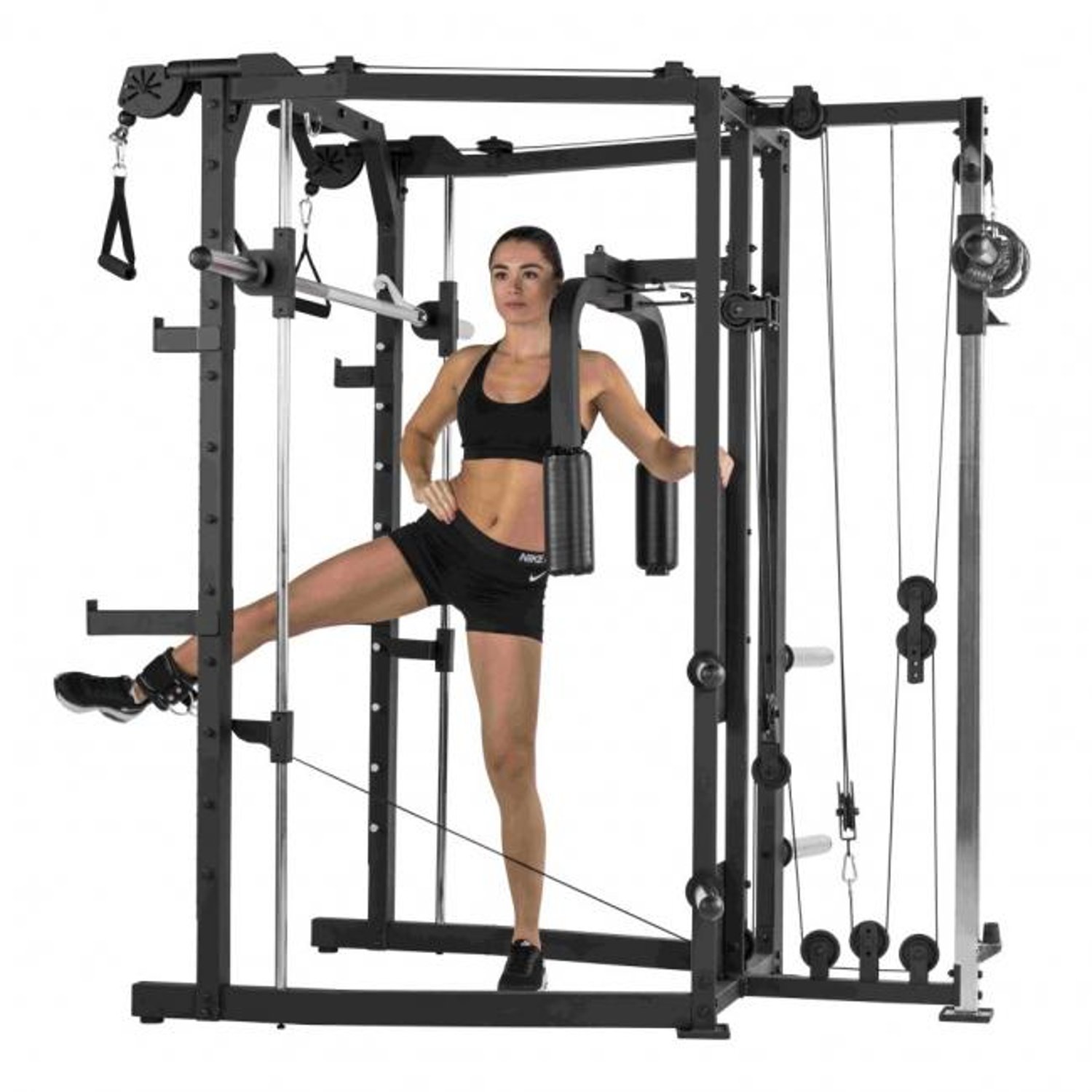 Tunturi SM80 Smith Kuntokeskus on täydellinen lihaskuntokeskus aktiivisesti treenaaville. Laitteen avulla on mahdollista treenata melkein kaikkia kehon lihaksia erittäin monipuolisten liikeratamahdollisuuksien ansioista.