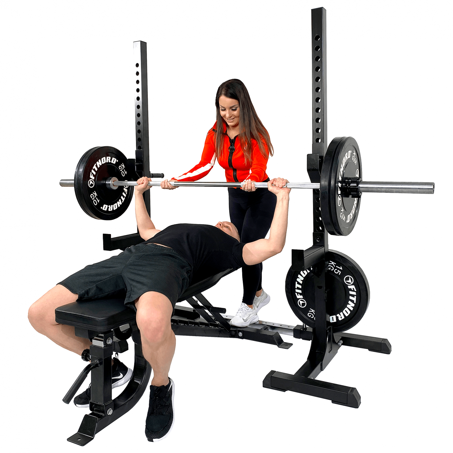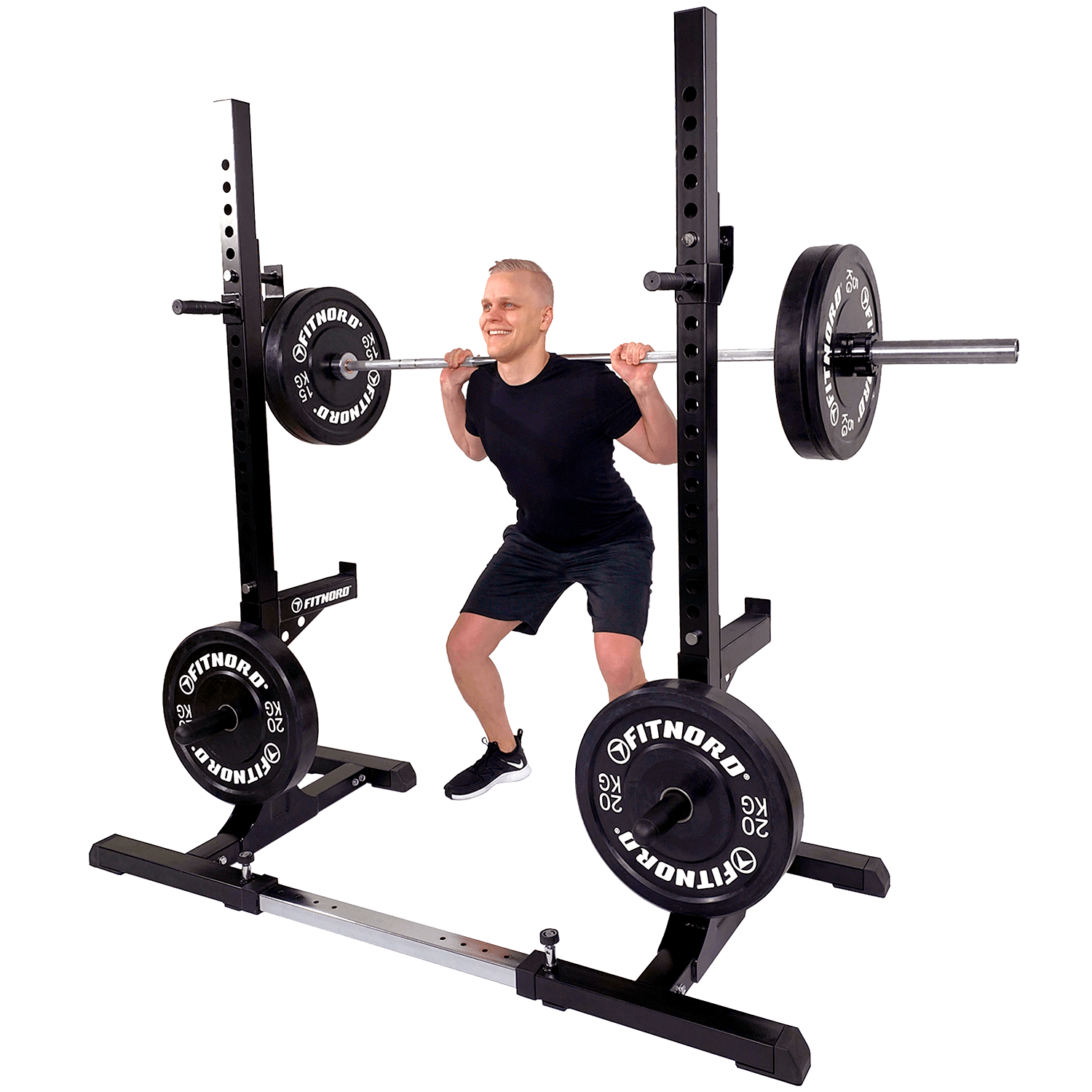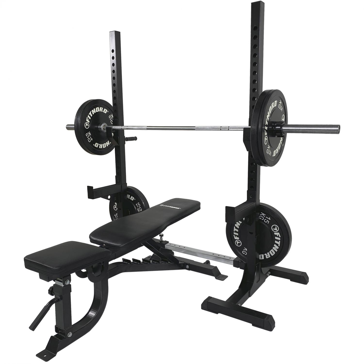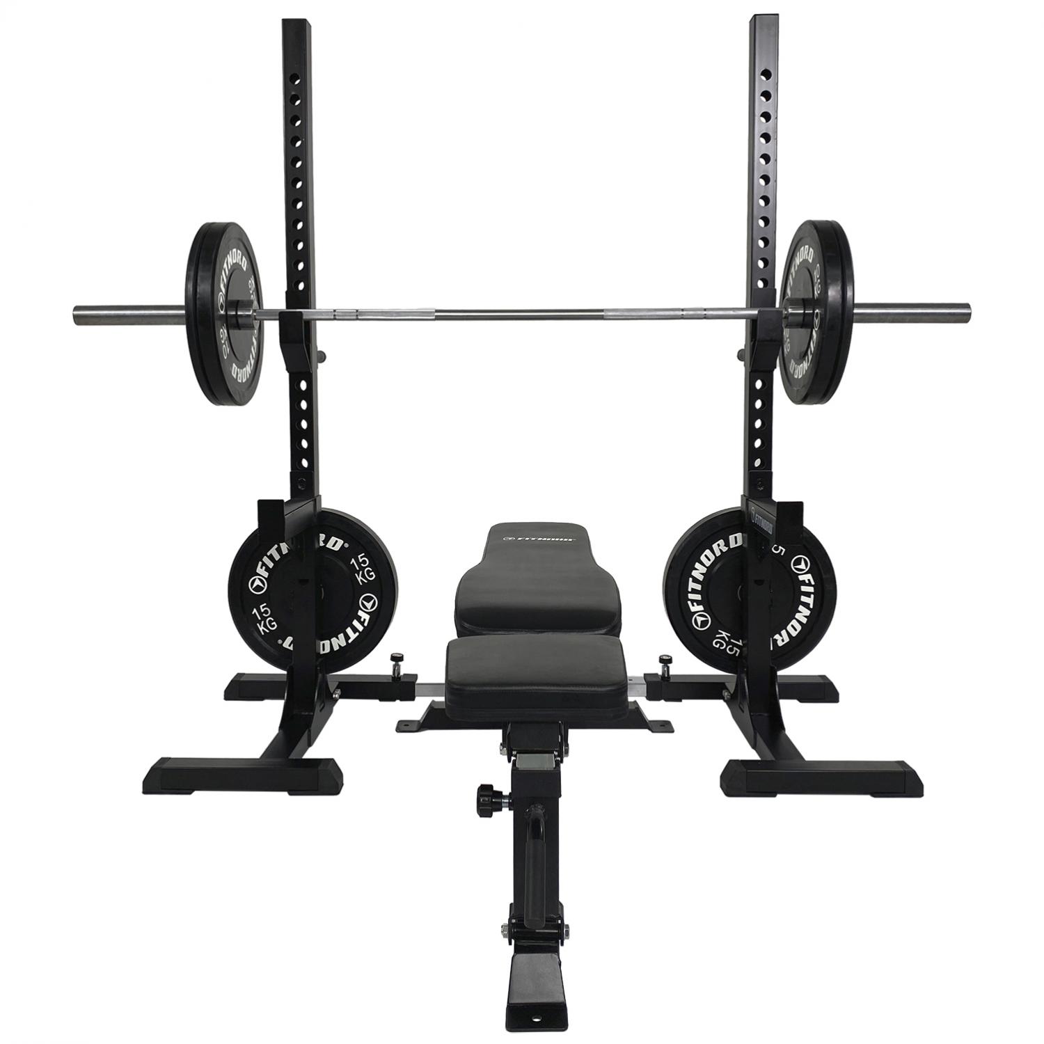 Leveyssäädettävä penkkipunnerrus- ja kyykkyteline PRO, FitNord