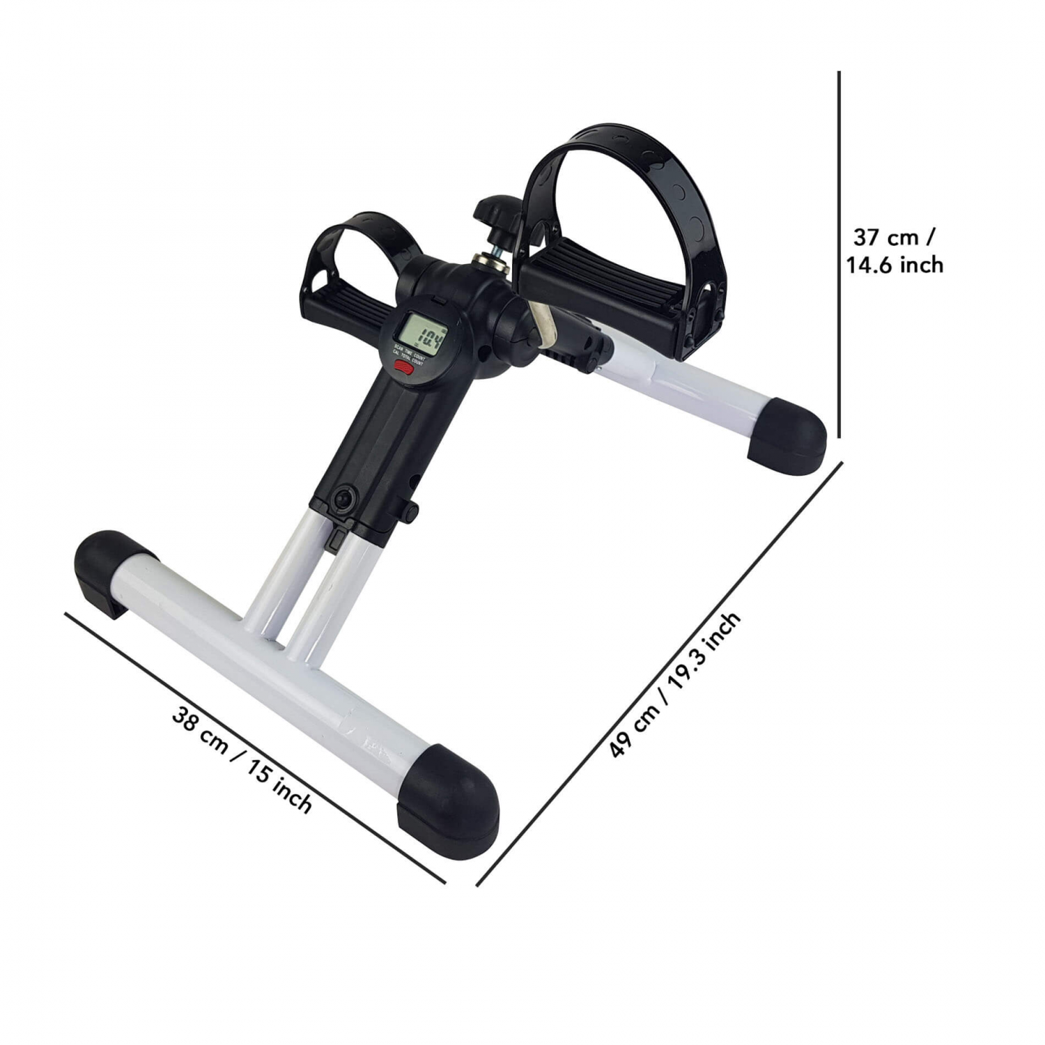 - Laitteen mittari näyttää harjoitusajan, poljetut kierrokset sekä arvioidun kalorinkulutuksen.