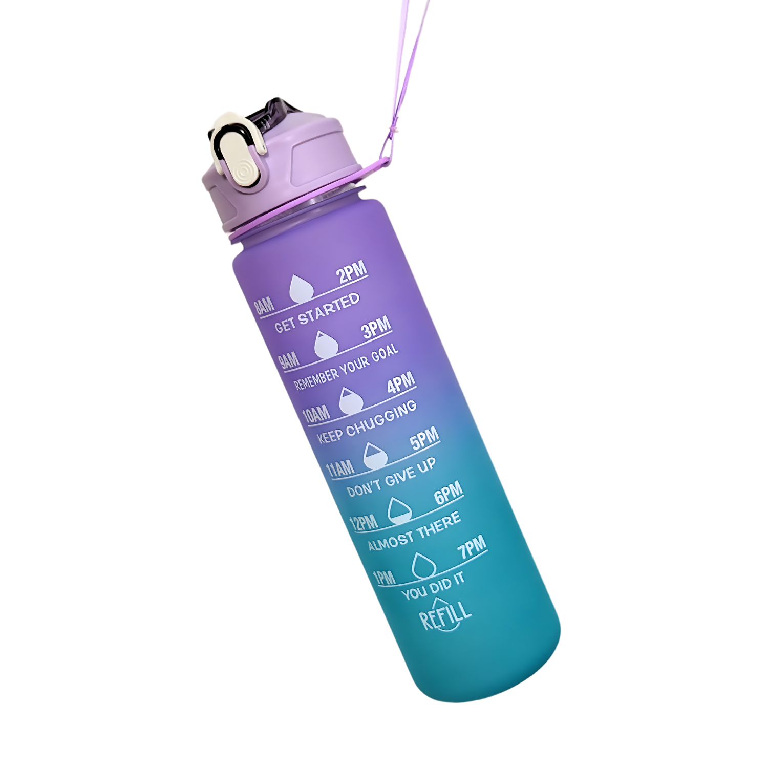 900ml juomapullo, joka kannustaa juomaan vettä päivän mittaan kätevän aikamerkinnän avulla.