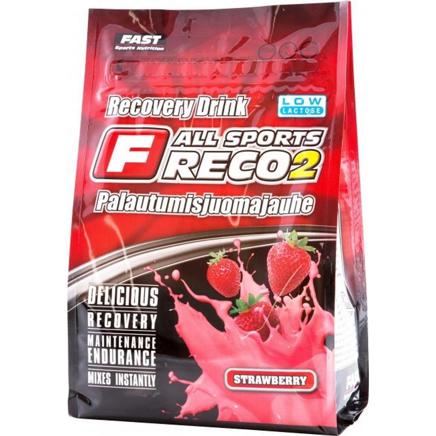 Palautusjuomajauhe, FAST RECO2 sisältää heraproteiinia, hydrolysoituja peptidejä ja hiilihydraatteja, jotka imeytyvät vaiheittain. Nopeimmin vaikuttavat pilkotut eli hydrolysoidut proteiinit ja nopeasti imeytyvät hiilihydraatit (mm. Vitargo™) sekä L-glutamiini, jotka käynnistävät palautumisen jo muutamassa minuutissa juoman nauttimisen jälkeen. Toisessa vaiheessa imeytyvät RECO2:n pitkäketjuiset hiilihydraatit ja hitaasti imeytyvät proteiinit, jotka jatkavat palautumisprosessia yli tunnin ajan.