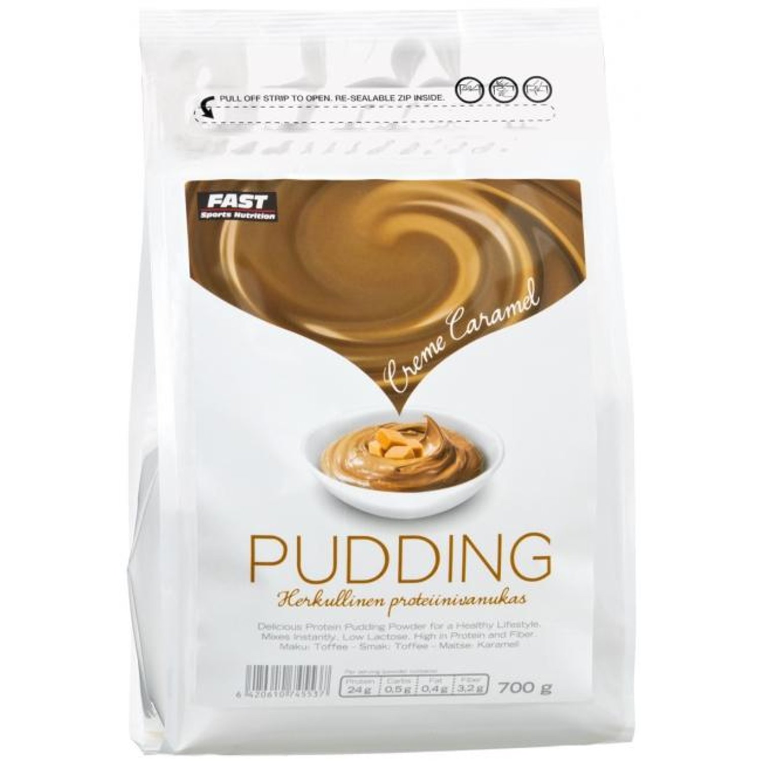 Proteiinivanukas, FAST Pudding700 g koostuu lähes ainoastaan lihaksille hyödyllisestä maitoproteiinista sekä ravintokuidusta. Herkullinen runsasproteiininen vanukas syntyy helposti sekoittamalla jauhe kylmään maitoon ja antamalla seoksen sakeutua muutaman minuutin.