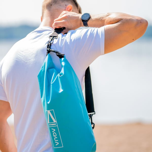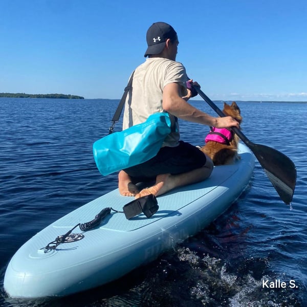 Kuivasäkki pitää tavarat kuivina ja tallessa, ja kassin rullattava suljentamekanismi on helppokäyttöinen. Kassin saa kiinnitettyä esimerkiksi SUP-laudan kiinnitysremmeihin niin rullausklipsillä kuin erillisellä klipsihakasella. Yleensä tosin riittää, että kassin laittaa laudan "mustekalalla" kiinni. Kun kassiin jättää hieman ilmaa, se myös kelluu pudotessaan veteen. Tähän 10 Litran FitNord Aqua kuivasäkkiin mahtuu hieman enemmän tavaraa. Tässä kassissa tulee myös olkaremmi mukana!