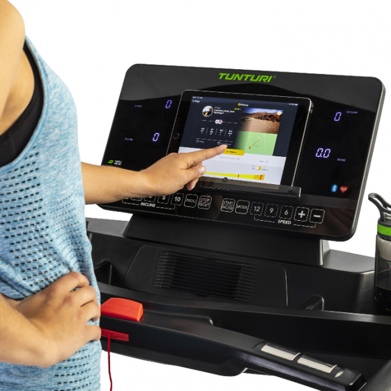 Monipuolisia ohjelmia ja sovelluksia on helppo käyttää suuren 10 tuuman värinäytön ansiosta. Endurance T80:ssa on jopa 44 eri harjoitusohjelmaa, joista löydät varmasti itsellesi sopivan treeniohjelman. Lisäksi laite mittaa aikaa, matkaa sekä kalorien kulutusta. Juoksumattoon voi yhdistää Tunturi Routes, AnyRun, Kinomap ja Zwift-sovelluksia Bluetooth-yhteydellä, mikä tekee treenaamisesta hauskempaa. Tablettitelineen avulla älylaitesovellusten ja oman viihteen tuominen mukaan harjoitteluun on helppoa. Laite mittaa sykkeesi käsikahvan kautta, mutta voit myös yhdistää juoksumattoon oman sykevyösi.Jämäkkä, mutta näppärä juoksumatto