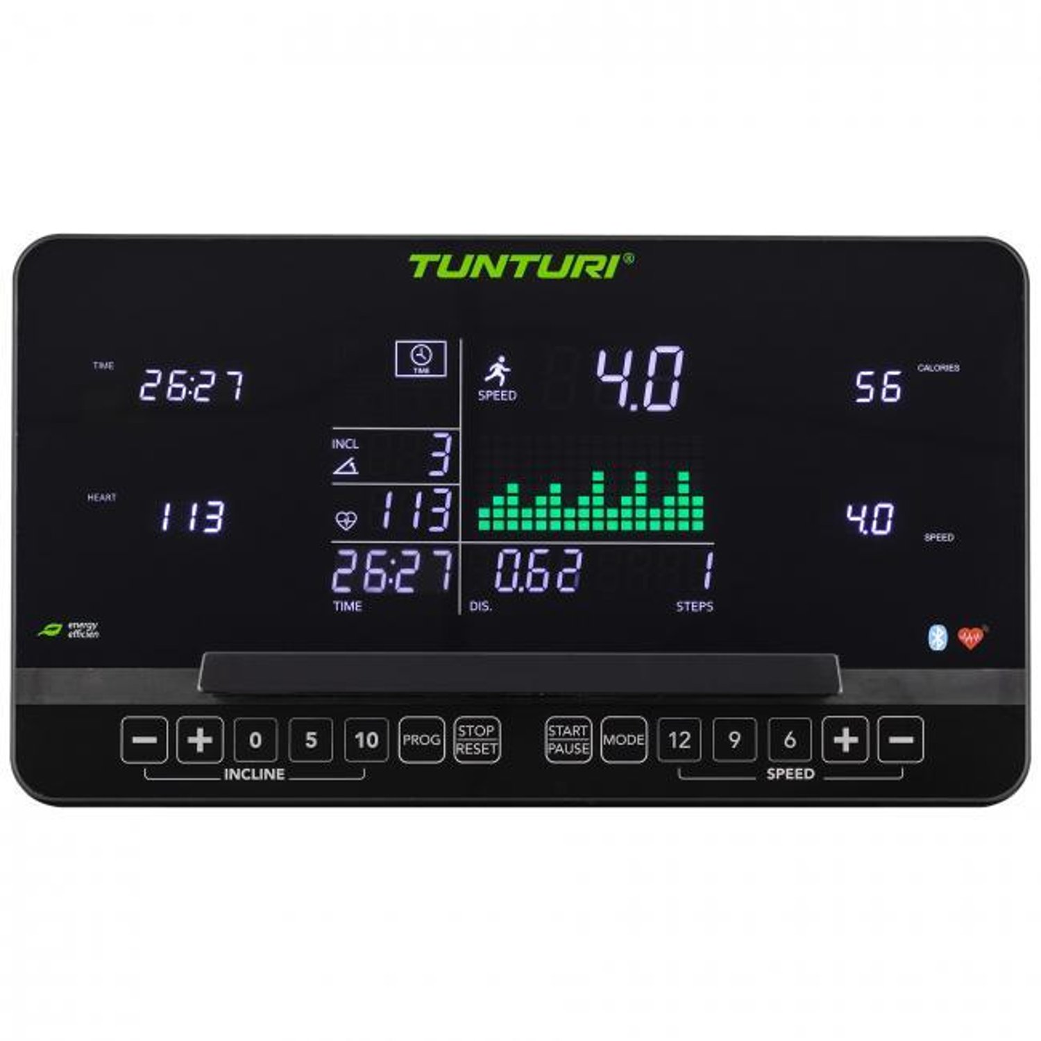 Tunturi T90 Endurance juoksumaton näyttö on suuri ja selkeä, ja siinä on käytetty LED/LCD tekniikkaa. 10 tuuman täysvärinäytöltä voi seurata treenin etenemistä ja siitä näkyykin kaikki olennaiset harjoitustiedot, kuten aika, matka, nopeus, kaltevuuskulma ja syke. 44 erillistä harjoitusohjelmaa tarjoavat kokonaan uusia ulottuvuuksia juoksu- ja kävelytreeneihin ja monipuolistaa harjoittelua.